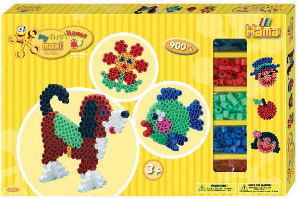 Hama maxi perler er lidt større end midi perler og lettere at holde omkring for små hænder.