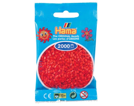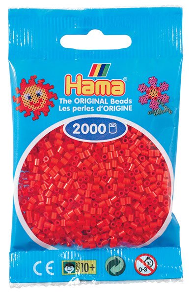 Posen indeholder hele 2000 mini perler i rød til at lave de smukkeste kreationer på perleplader. Suppler eventuelt med nogle af de mange andre farver mini perler fra Hama. Perlerne kan selvfølgelig også altid bruges til at lave flotte halskæder af.