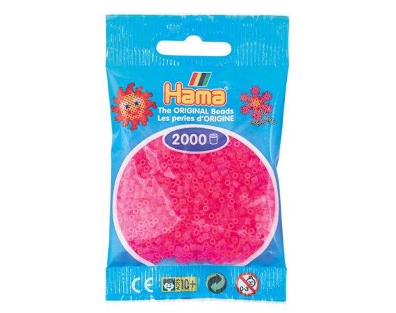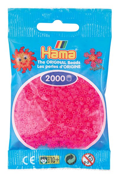 Posen indeholder hele 2000 mini perler i fuchsia til at lave de smukkeste kreationer på perleplader. Suppler eventuelt med nogle af de mange andre farver mini perler fra Hama. Perlerne kan selvfølgelig også altid bruges til at lave flotte halskæder af.