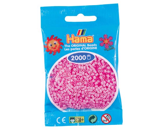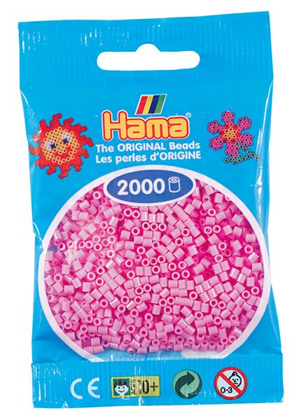 Posen indeholder hele 2000 mini perler i pastel pink til at lave de smukkeste kreationer på perleplader. Suppler eventuelt med nogle af de mange andre farver mini perler fra Hama. Perlerne kan selvfølgelig også altid bruges til at lave flotte halskæder af.
