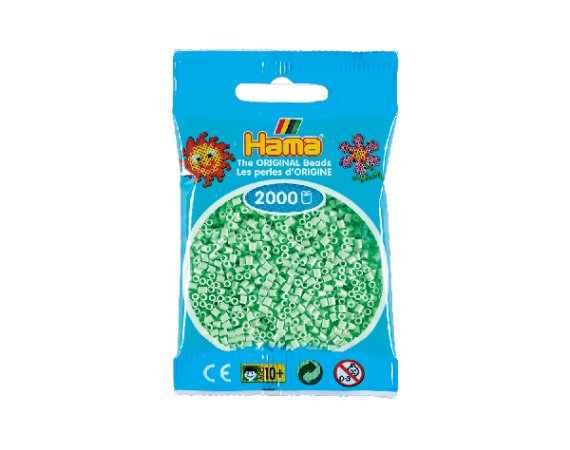 Posen indeholder hele 2000 mini perler i pastel mint til at lave de smukkeste kreationer på perleplader. Suppler eventuelt med nogle af de mange andre farver mini perler fra Hama. Perlerne kan selvfølgelig også altid bruges til at lave flotte halskæder af.