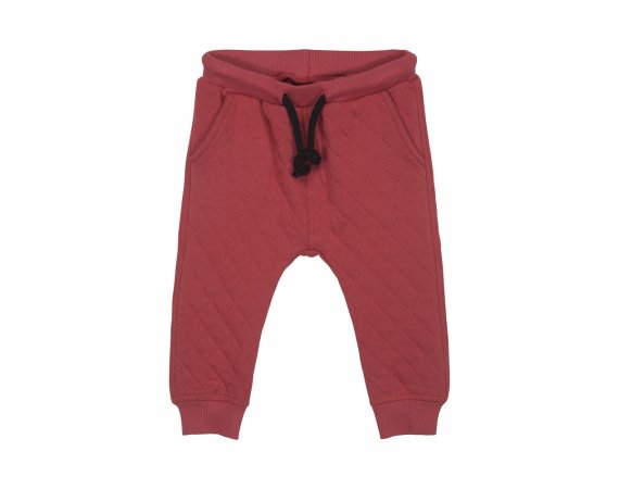 Bukserne er i quiltet bomuldskvalitet og har lommer, samt snøre i livet og praktiske ribkanter i liv og ved ankler.