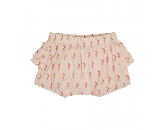 De fineste bloomers i ferskenrosa farve med flæser og is print fra Petit by Sofie Schnoor