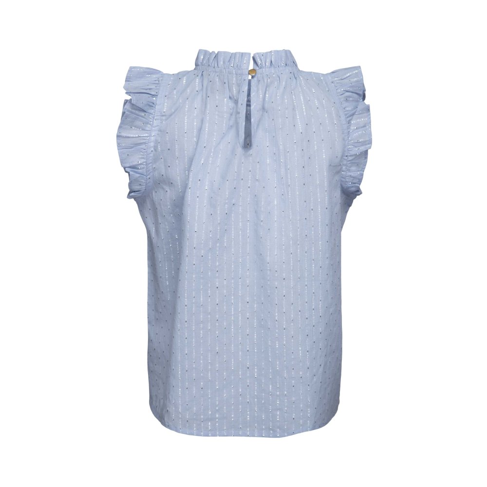 Smart lyseblå sommer bluse med sølv striber