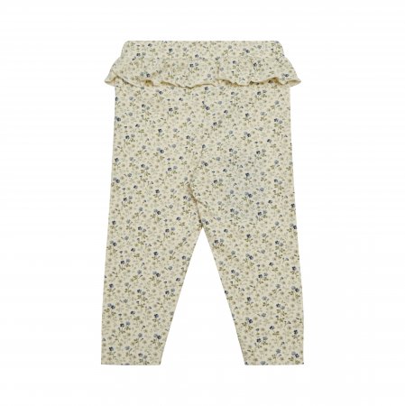 Bedårande byxor från Petit by Sofie Schnoor i en mjuk och stretchig bomullskvalitet. Byxorna är i en krämfärg med blommor, har resår i midjan och en fin volangkant.