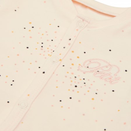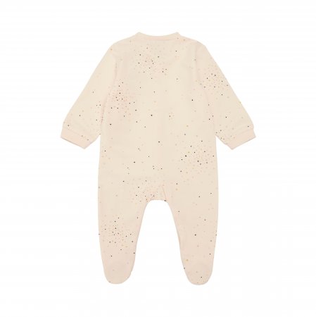 Yndig rosa jumpsuit med fødder og lange ærmer fra Petit by Sofie Schnoor. Dragten har ribkant i halsudskæring og ved håndled. Den lukkes foran med trykknapper.