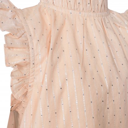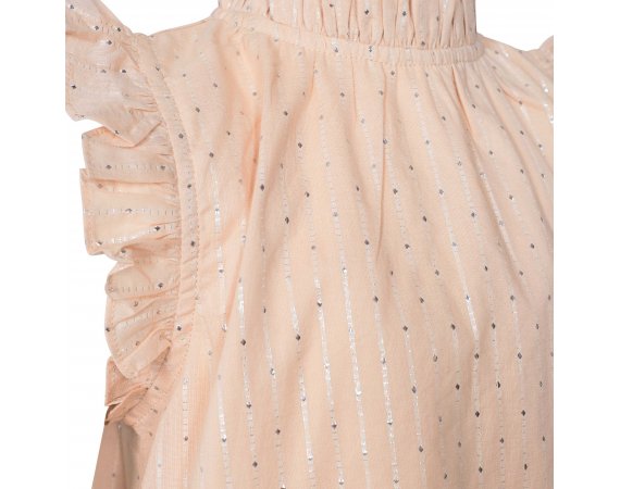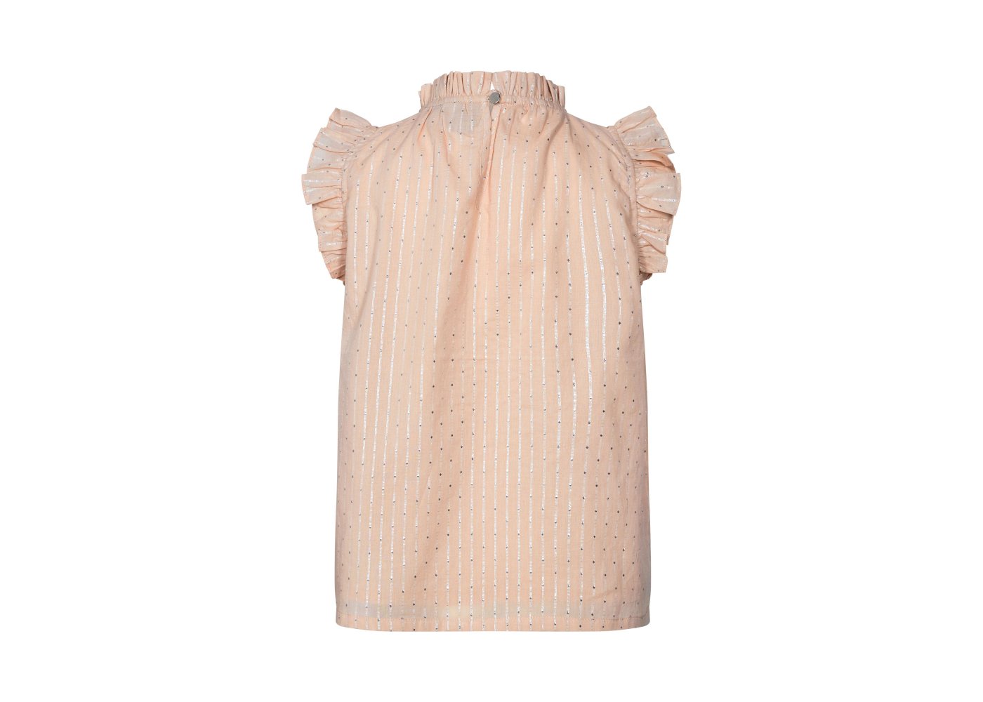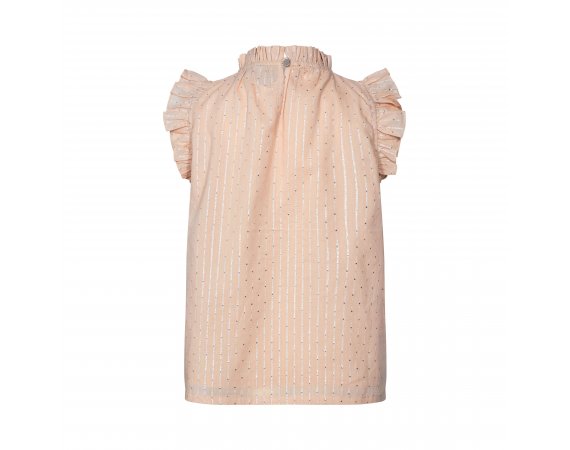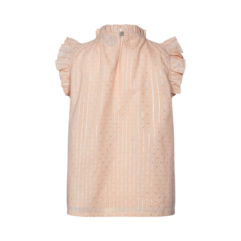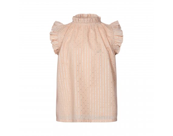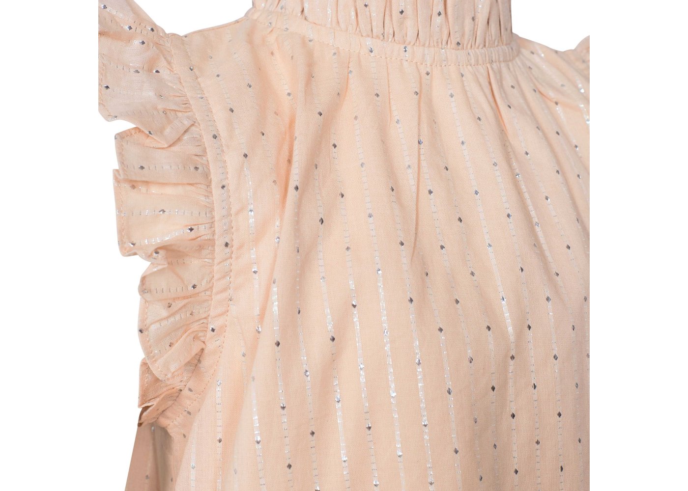 Yndig bluse i lyserød med fine sølvstriber og prikker.