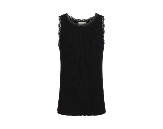 Toppen er uden ærmer og har det sødeste blondemønster i halsudskæring og ved ærmegab.En top der kan styles med næsten alt og give et flot look.
