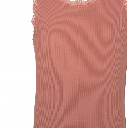 Toppen er uden ærmer og har det sødeste blondemønster i halsudskæring og ved ærmegab.En top der kan styles med næsten alt og give et flot look.