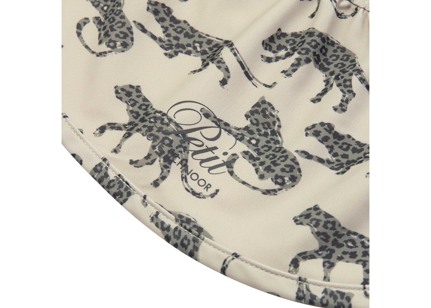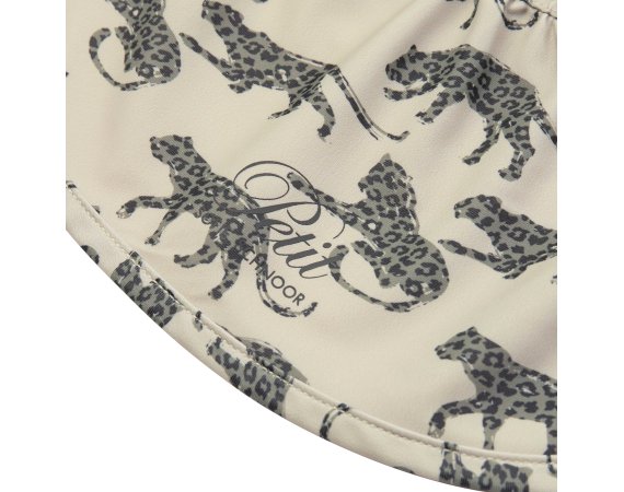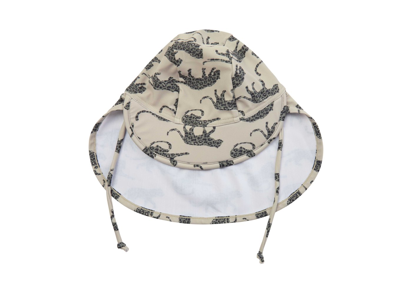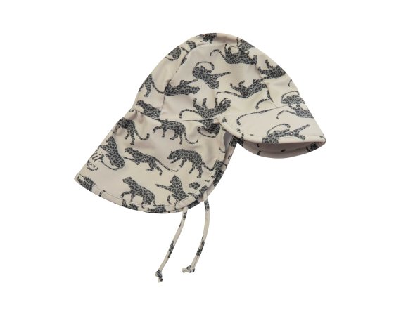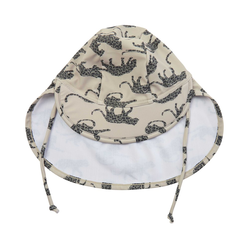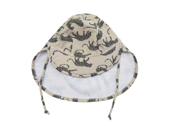 Solhat med smart leopard print fra Petit by Sofie Schnoor.Solhatten har bindebånd og ekstra længde i nakken, så den beskytter mod solen.