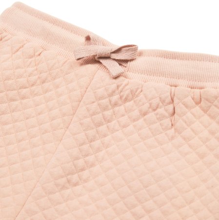 Bukserne er i quiltet bomuldskvalitet, og har snøre i livet og praktiske ribkanter i liv og ved ankler. Der fås matchende sweatshirt i samme skønne design og farve.