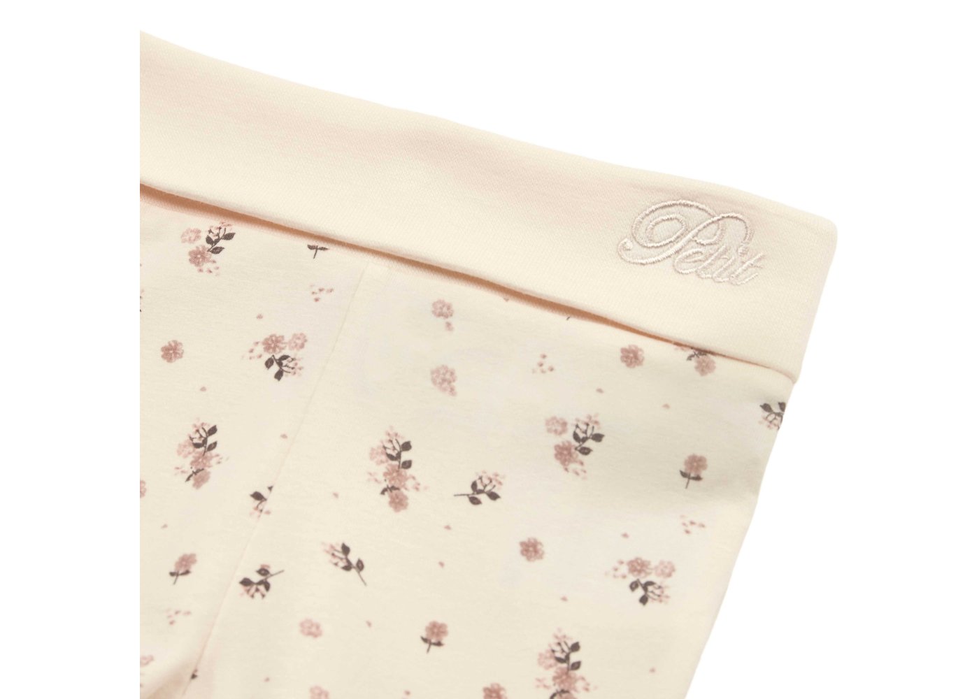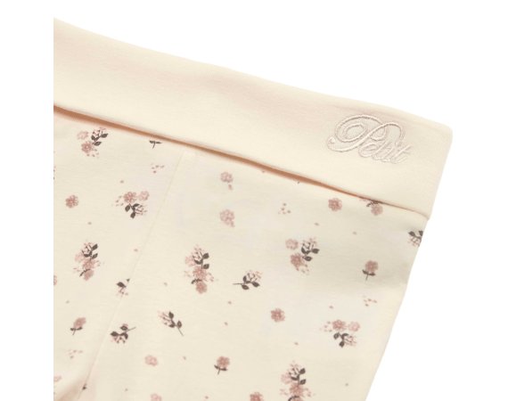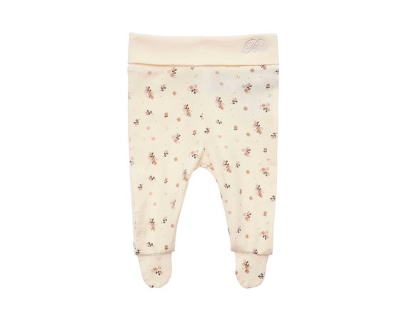 Søde antik hvide bukser med fødder fra Petit by Sofie Schnoor. Bukserne har fine blomster og en fin bred rib i livet, som gør dem behagelige at have på.