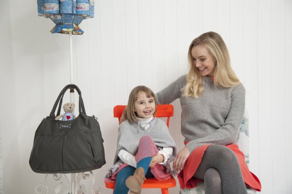 Taskens skulderrem kan øges og mindskes efter behov, ligesom den kan sættes på barnevognens styr.