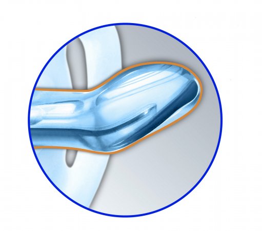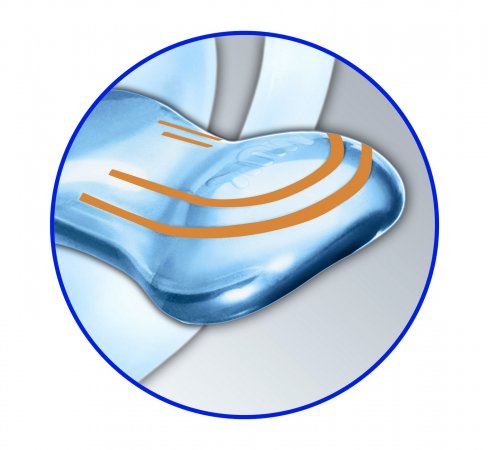 Genius Color sutten er udstyret med NUK AIR SYSTEM, som betyder, at luften kan slippe ud via en ventil. Sutten forbliver derved blød, flad og forebygger kæbedeformationer.