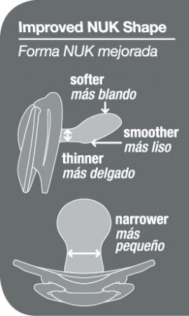 NUK sutter er designet i samråd med fagfolk med formålet at stimulere læbe-, tunge- og ansigtsmuskulatur, som er med til at fremme en sund udvikling af tænder og kæbe.