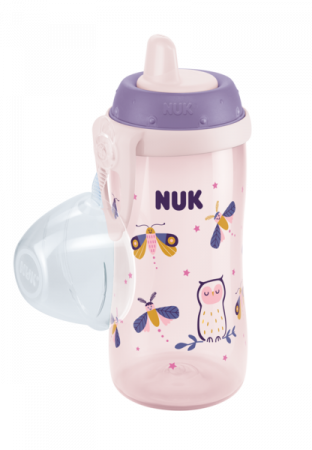 NUK Kiddy spildfri drikkeflaske i pink med dyr.