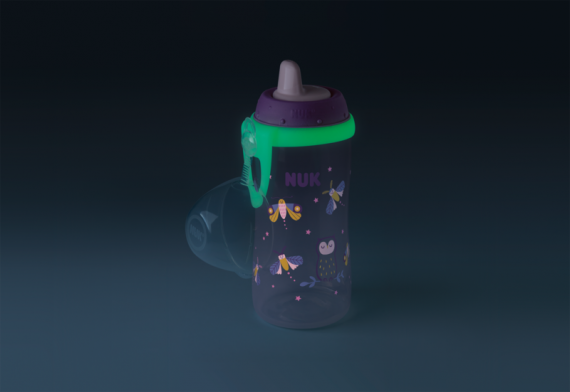 NUK drikkeflaske er specielt udformet så den er let at håndtere for små hænder. Den er udstyret med en klips på flaskens side, så den er let at fastgøre i bæltet, på rygsækken eller på klapvognen.
