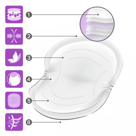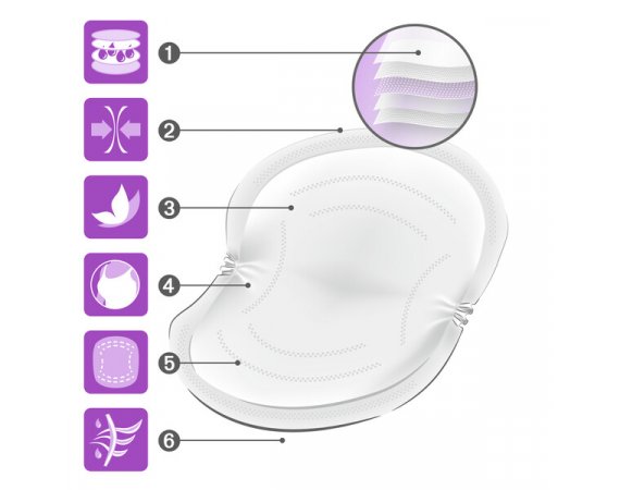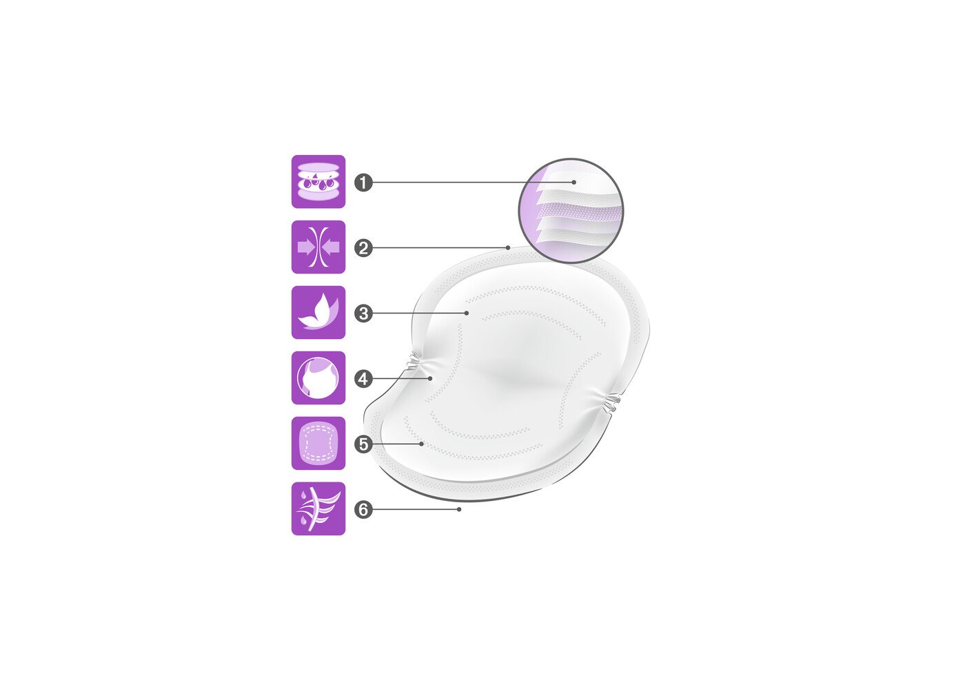 Super absorberende ammeindlæg opbygget i flere lag, som hurtigt og effektivt opsamler brystmælk. Ammeindlægget har en indre kerne med textur og Micro perler, som gør det ekstra stærkt med en effektiv sugeevne. Selv om ammeindlægget er opbygget i flere lag, er det stadig tyndt og diskret.