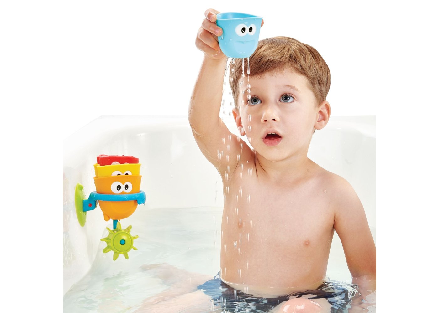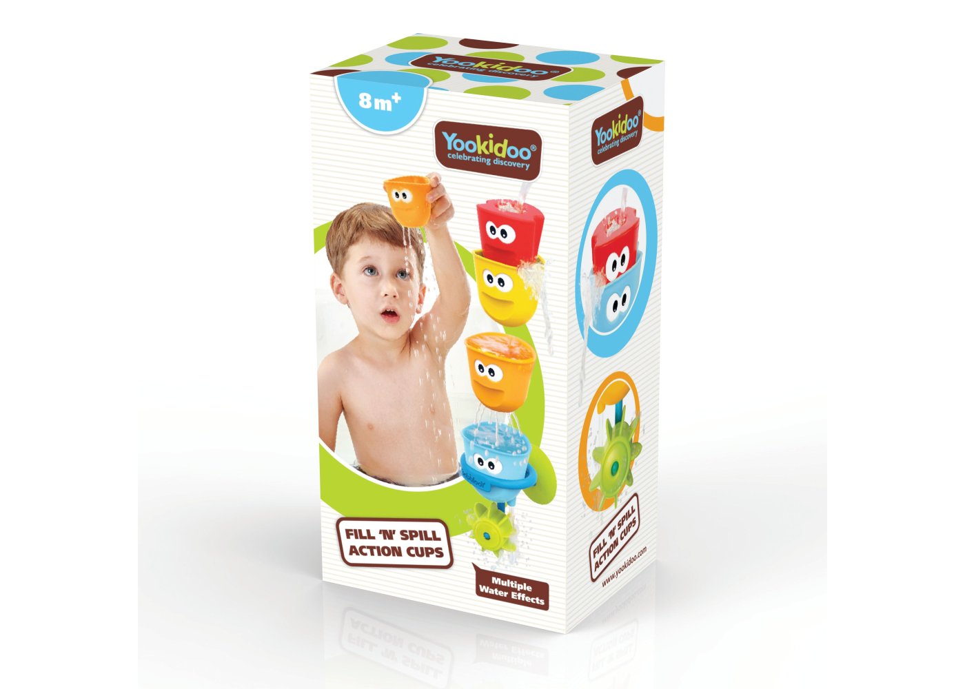 Er dit barn ked af at komme i bad, kan dette sjove bade legetøj måske ændre på den sag. Det bliver ikke kedeligt at gå i bad mere. Her får du nemlig fire kopper med forskellige vandeffekter, som kan undersøges og hældes vand i. Sættes kopperne i den medfølgende kopholder med tandhjul under, sker der ting og sager!