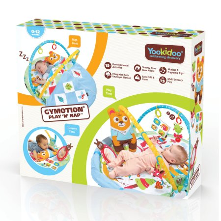 Tæppet er udstyret med to indstillelige buer, til at hænge legetøj op i. Buerne vippes nemt helt ned i vandret stilling, når barnet skal sidde op eller tæppet skal pakkes sammen.